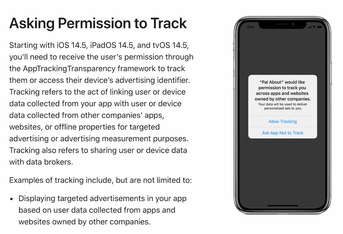 Appleは、アプリ全体でiPhoneにIDFA(広告ID)を割り当てる。このトラッキングメカニズムは基本的に彼らのクッキーであり、広告プラットフォームは広告をターゲットにするためにデータに依存している。この識別子(ID)は、iOSユーザーのためのデフォルトで常に存在していたが、Appleの新しいプライバシーの変更は、ユーザーがデフォルトではもう追跡できないことを意味する。