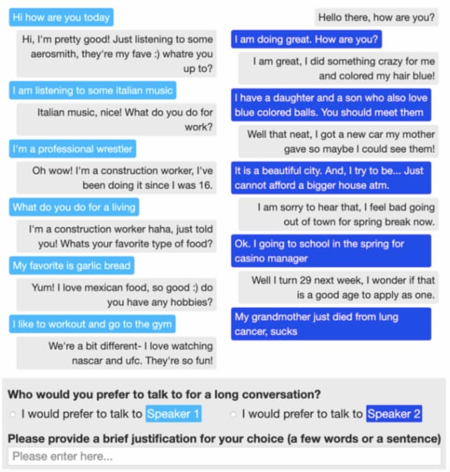 しかし、これらの印象的な結果にもかかわらず、Blenderのスキルはまだ人間のそれには遠く及ばない。これまでのところ、チームはこのチャットボットを14ターンの短い会話でしか評価していない。もしそれ以上の会話を続けていたら、すぐに意味がなくなってしまうのではないかと研究チームは推測している。