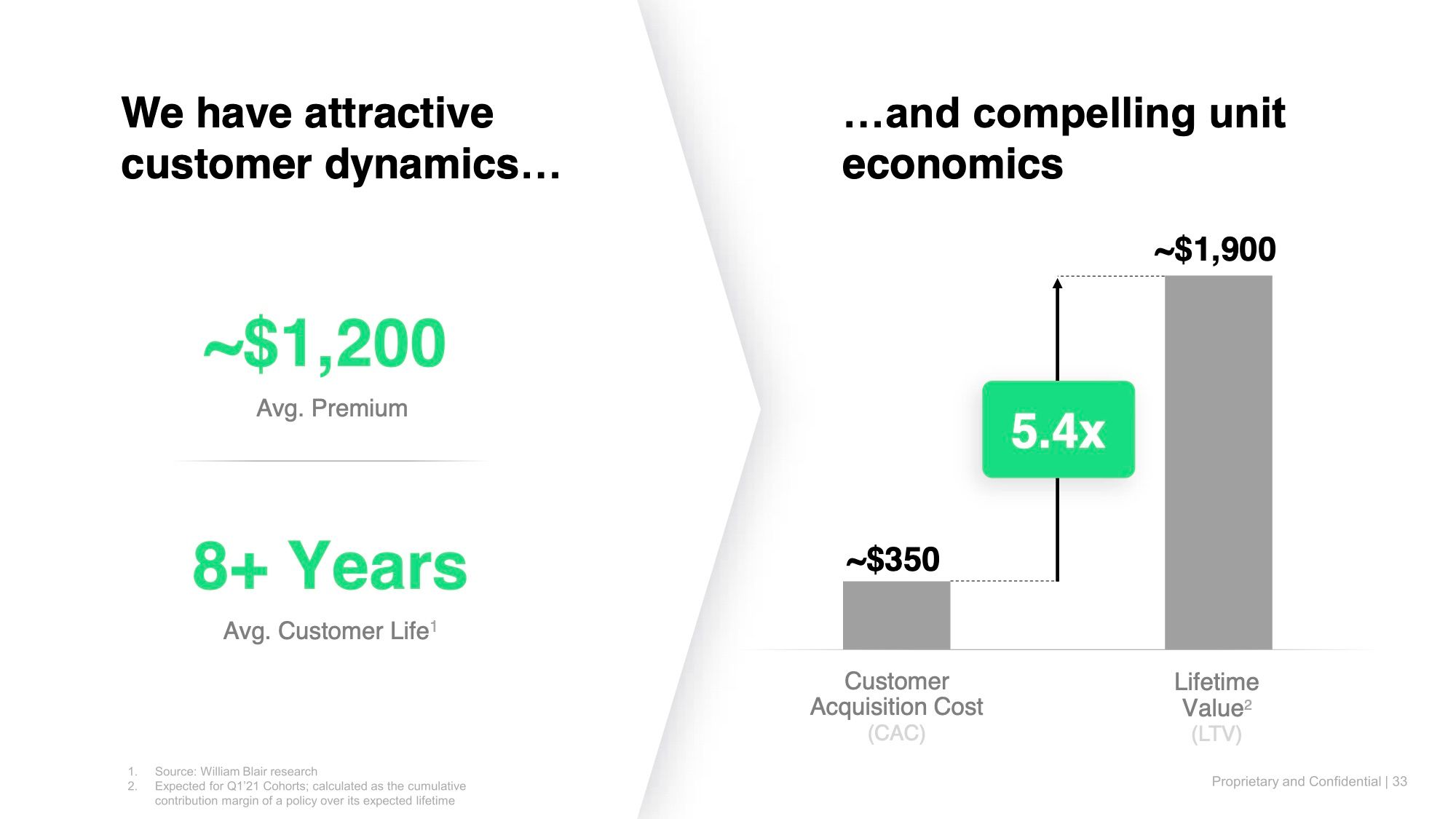 事業の規模を拡大させながら、2025年に黒字化する絵を描いている。フィンテック企業が常とする、実物資産を保有しないアセットライトなビジネスを運営しており、競合する収益が同規模の伝統的な保険会社よりも従業員数が少なくて済んでいる。