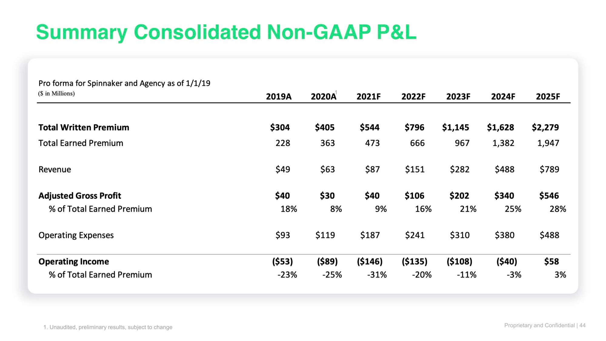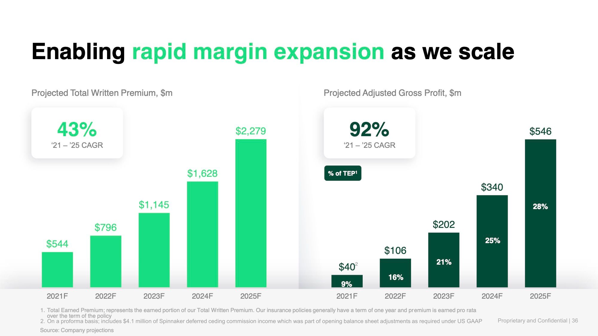- Total Earned Premium(=収益)に対する割合、つまり、売上総利益率は2021年の9%から次第に増加し、2025年には28%に達すると予測する。