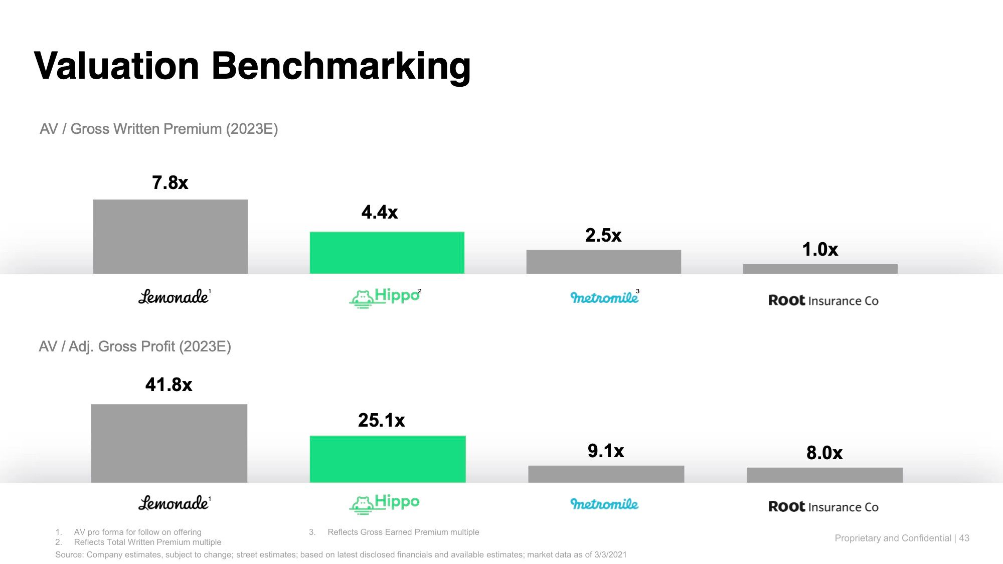 Hippoは例にもれず赤字ではあるものの、通常のSPACとのリバースマージャー(逆合併)を実行する新興企業とは状況が異なる。2020年通年の赤字幅は−8,900万ドルに過ぎない(例えば、Uberは同年の純損失は67億ドルである)。