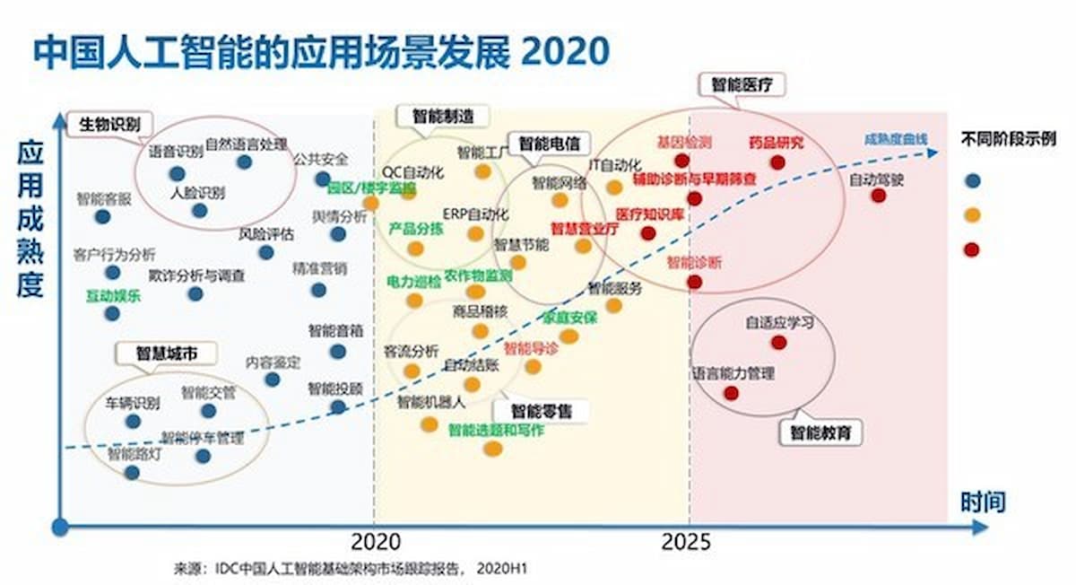 報告書は、AI投資が比較的集中している業界だけでなく、ビジネス需要に牽引され、メディアやエンターテインメント、現代農業、スマートホーム、スマートパワーなど、さまざまな分野に放射されて、多くの断片的なアプリケーションが普及し始めている、と主張している。全体としては、バイオメトリクス、インテリジェント顧客サービス、精密マーケティングなどの汎用的な応用シナリオがかなりの成熟期を迎え、AIの産業化が点から点へと進み、汎用的な応用シナリオからより産業に特化したシナリオへと浸透し、産業用AIは初期のパイロットから徐々に企業の発展と生き残りのための当面のニーズとなってきていくという。