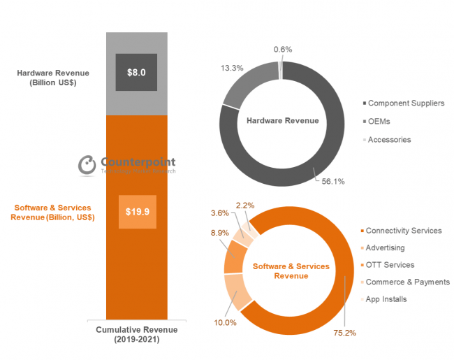 市場調査会社のカウンターポイント・テクノロジー・マーケット・リサーチ によると、今後3年に渡って、3億7000万台のスマートフィーチャーフォンが全世界で出荷される見通し。今後3年間で280億米ドルの収益を生み出す市場規模となる見込みという。