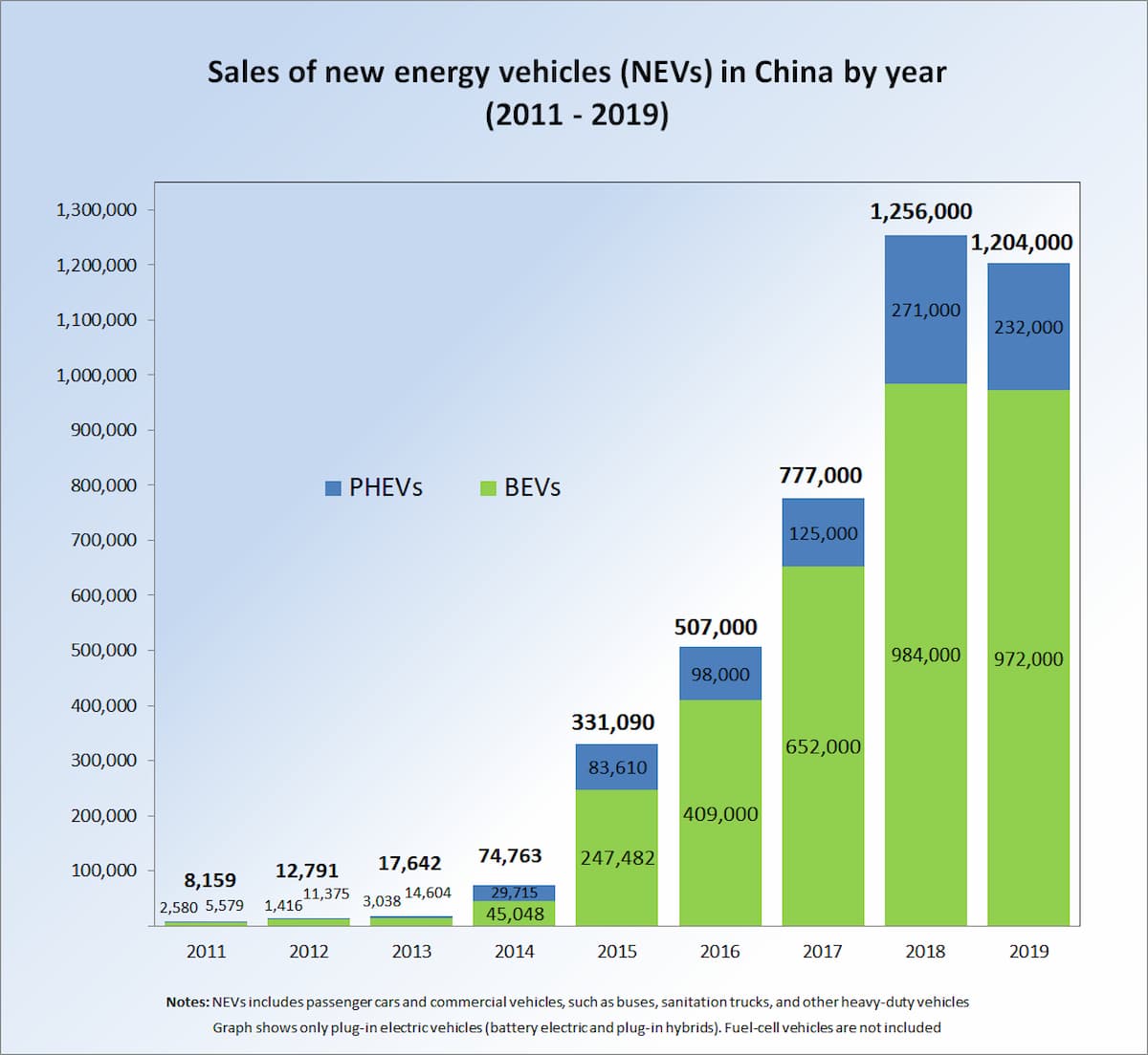 全自動車におけるEVのシェアを高めることを目指しているのは、中国だけではない。過去3年間で、20の自動車メーカーと20の国が電気自動車の目標を設定している。現在、EVは2015年の2倍以上、2013年の6倍以上の台数が存在し、2018年9月時点で世界中で400万台以上が使用されている。