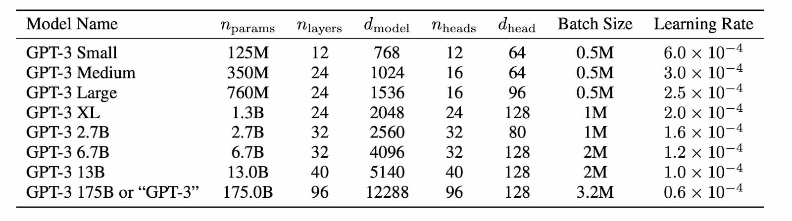 この仮説を検証するために、研究チームは以前のモデルであるGPT-2のパラメータを15億個からGPT-3では、1750億個に増やした。トレーニングのために、チームはCommon CrawlデータセットとWikipedia英語版を含むいくつかのデータセットを収集した。このモデルはいくつかのNLPベンチマークで評価され、「クローズドブック」の質問応答タスクで最先端の性能にマッチし、LAMBADA言語モデリングタスクで新記録を樹立した。