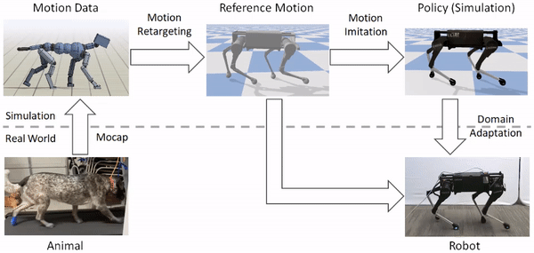 - Xue Bin Peng et al. Learning Agile Robotic Locomotion Skills by Imitating Animals. Robotics Science and Systems (RSS 2020).