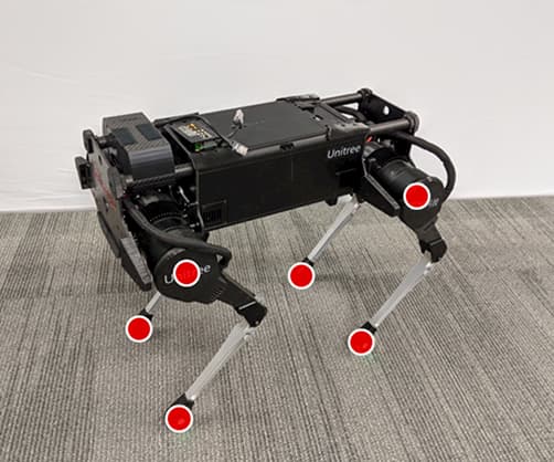 動物の体は、一般的にロボットの体とは大きく異なります。そのため、ロボットが動物の動きを模倣する前に、まずロボットの身体に動きをマッピングしなければなりません。リターゲティングプロセスの目標は、動物の動きの重要な特徴を捉えたロボットの基準となる動きを構築することです。これを行うために、まず、腰や足などの動物の体のソースキーポイントのセットを特定します。次に、ロボットの身体上に対応するターゲットキーポイントを指定します。
