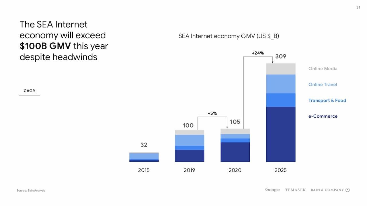 昨年11月に公開されたGoogle, Temasek, Bain&Companyの報告書は、2020年、地域はコロナの感染拡大により成長の停滞に直面したものの、東南アジアのインターネット・エコノミーは引き続き堅調で、成長が期待される、と予測している。