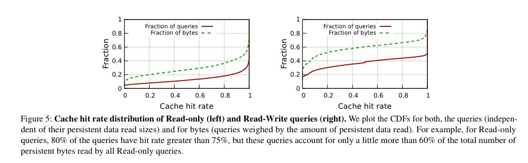 - 顧客が送信するクエリの種類は多岐にわたっており、例えば、読み取り専用のクエリ、書き込み専用のクエリ、読み取り/書き込みのクエリなどがあるが、これらはそれぞれ、全顧客クエリの約28%、約13%、約59%を占めている。